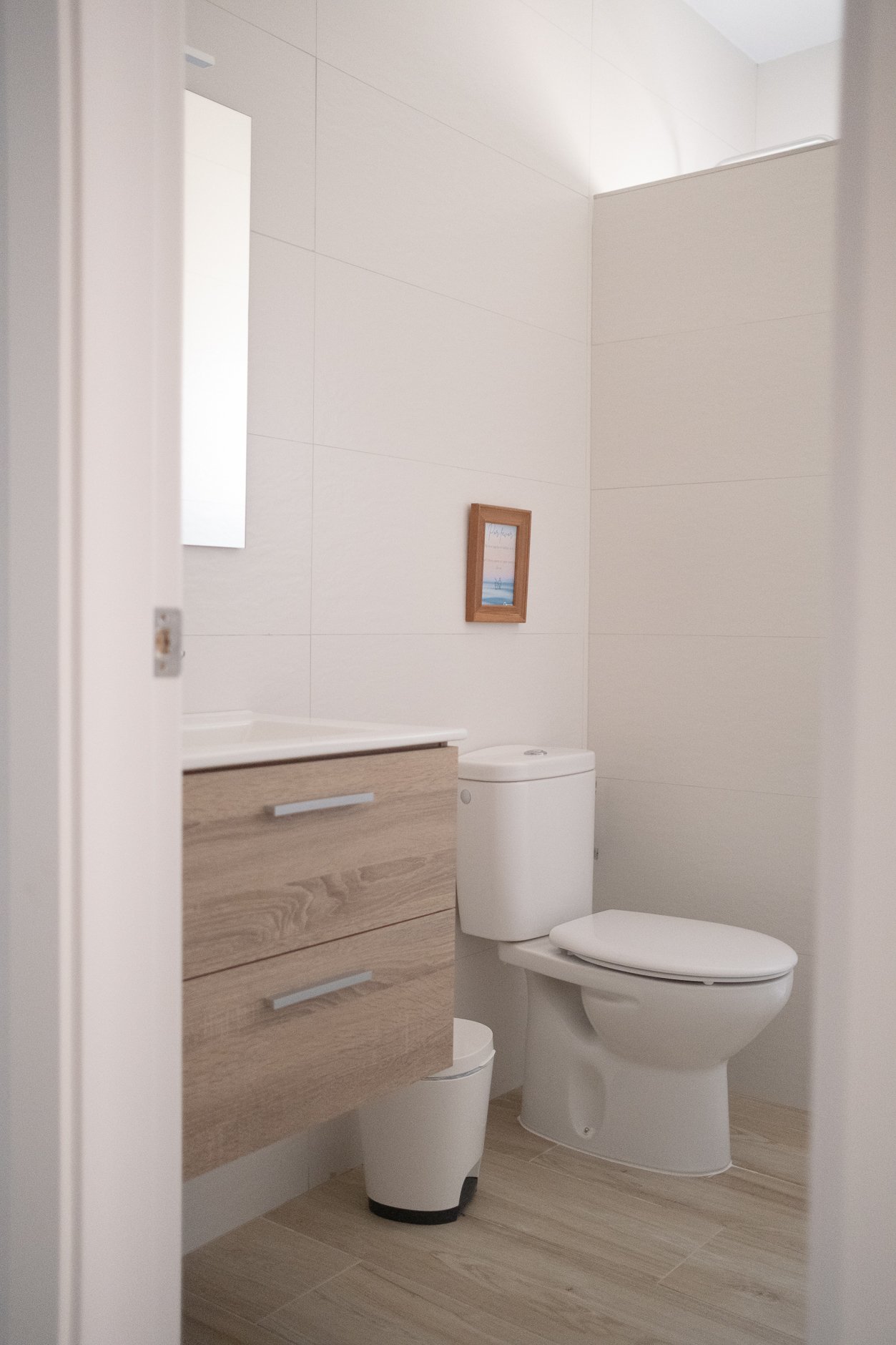 Para acceder a los dormitorios pasamos por un pasillo que tiene acceso al único baño con placa ducha.