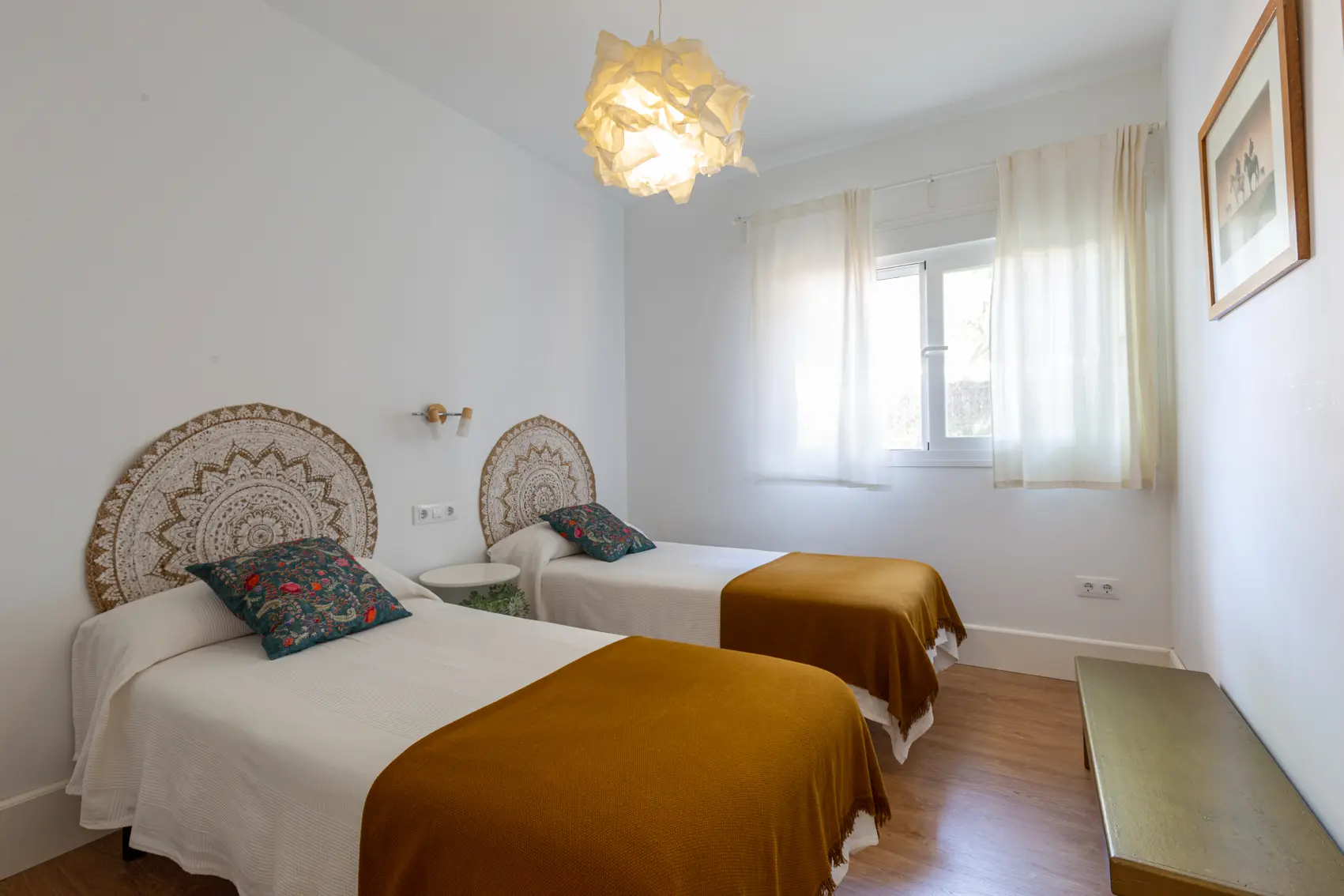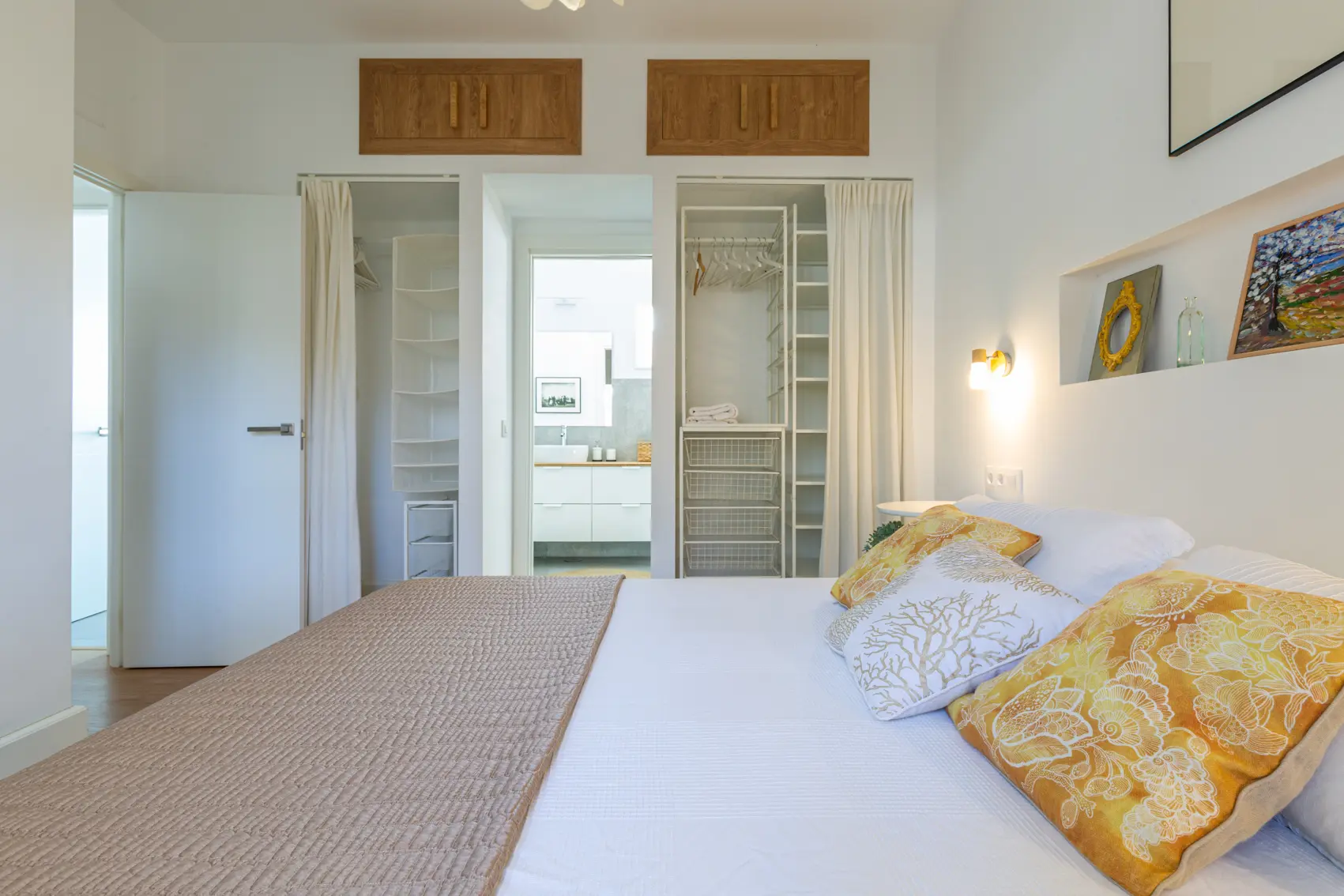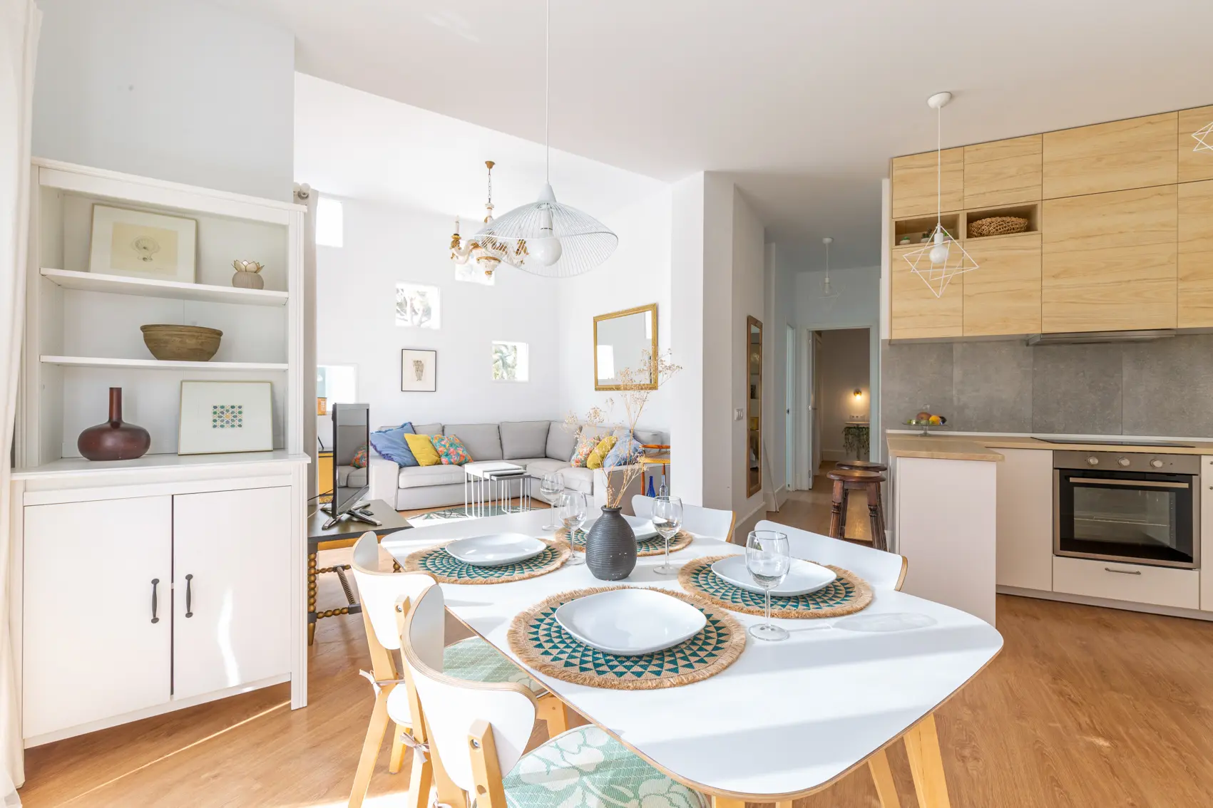 Destaca por su luminosidad, con múltiples ventanas, techos altos y en general un espacio que combina de forma armónica la estética con lo funcional y práctico. Tiene dos dormitorios, el principal con cama doble (160cm) y baño ensuite, y el segundo con dos camas individuales (90cm), amplio salón-comedor con acceso directo a la terraza, y cocina abierta totalmente equipada. La terraza tiene una zona para comer y otra zona chillout.