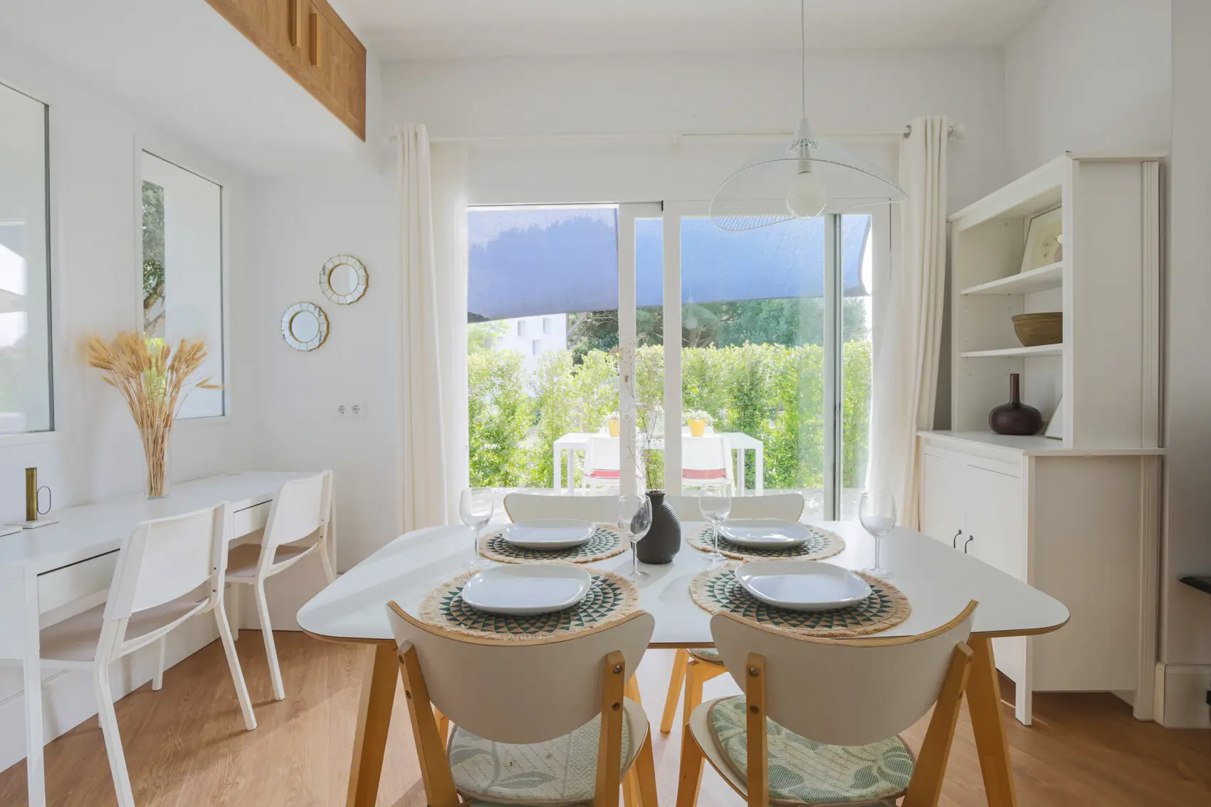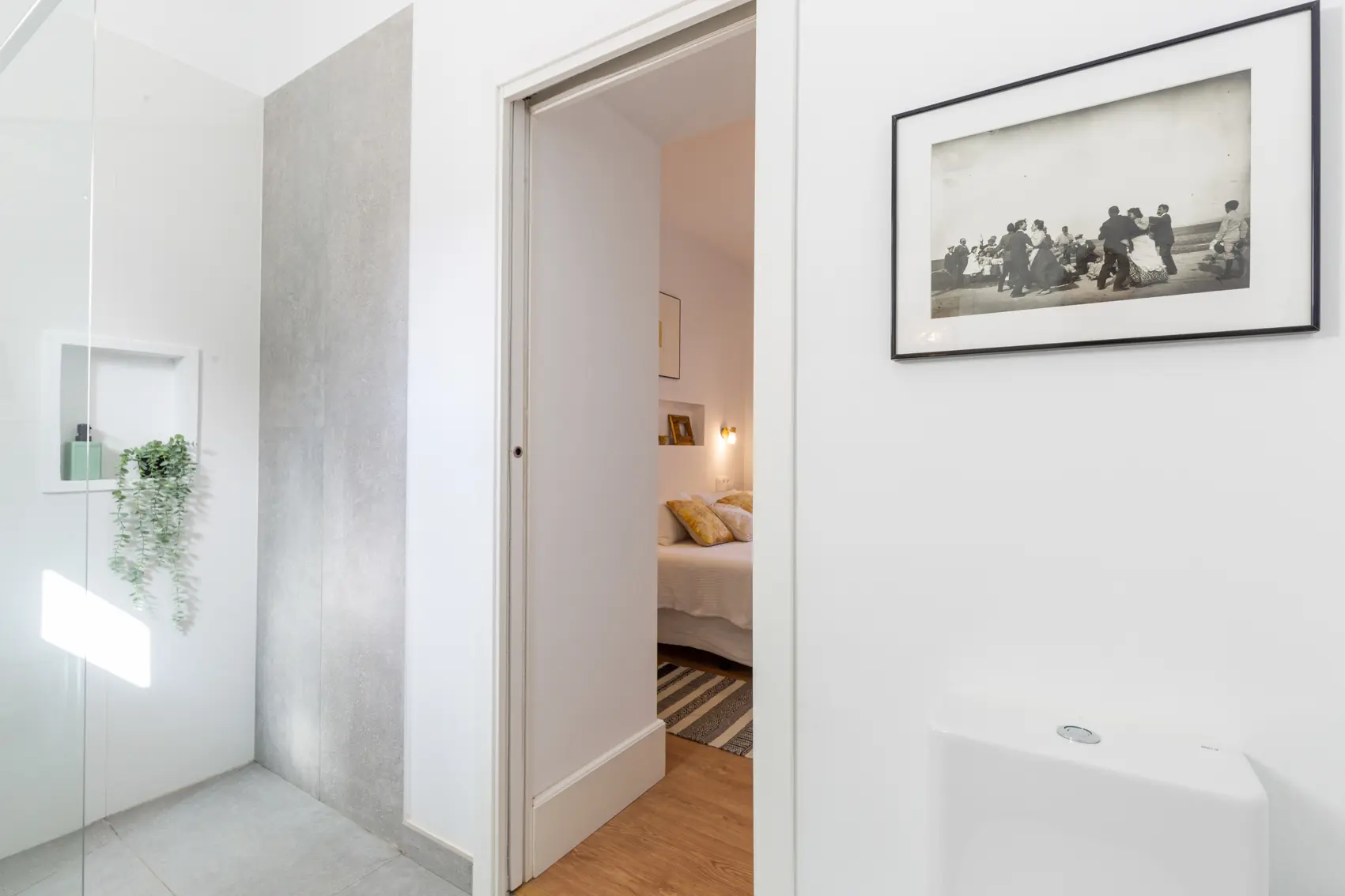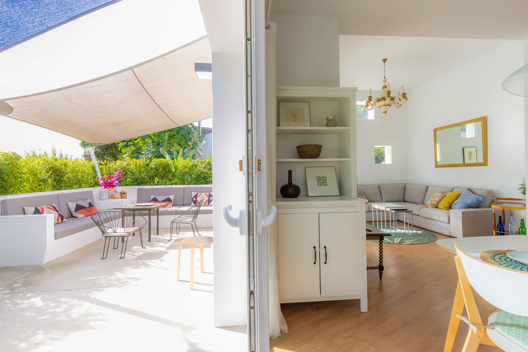 Destaca por su luminosidad, con múltiples ventanas, techos altos y en general un espacio que combina de forma armónica la estética con lo funcional y práctico. Tiene dos dormitorios, el principal con cama doble (160cm) y baño ensuite, y el segundo con dos camas individuales (90cm), amplio salón-comedor con acceso directo a la terraza, y cocina abierta totalmente equipada. La terraza tiene una zona para comer y otra zona chillout.