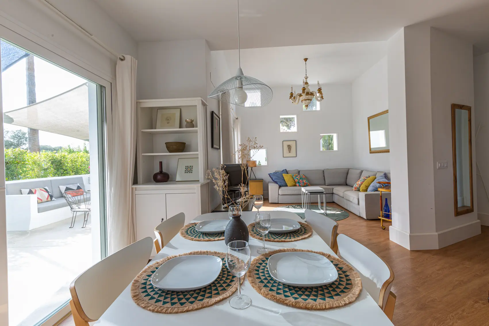 La Casa Luz es todo un paraíso de altas calidades y a 10 min de la playa de Mangueta. Se encuentra ubicada en una parcela de 1.500 m2, donde comparte con otras dos casas zonas comunes ajardinadas y una preciosa piscina de sal con la Casa Agua. Cuenta con un amplio porche, salón-comedor y cocina abierta. Dos dormitorios espaciosos y dos baños completos. Ideal para unas vacaciones junto al mar.