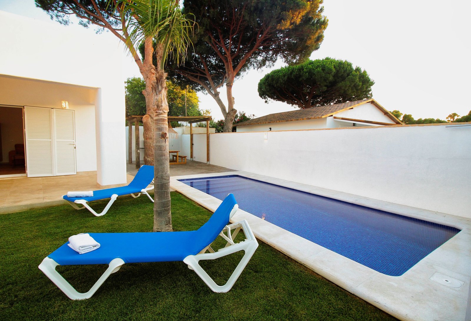 Casa Pino es una hermosa unifamiliar con piscina de estilo ibicenco situada entre dos grandes y preciosos pinos de nuestra zona. Su piscina de 15m2 la hace ideal para los días de descanso. Dispone de dos aparcamientos privados con puertas automáticas. Los accesos a la vivienda son totalmente privados e independientes, con códigos de entrada para su cómodo check in online.